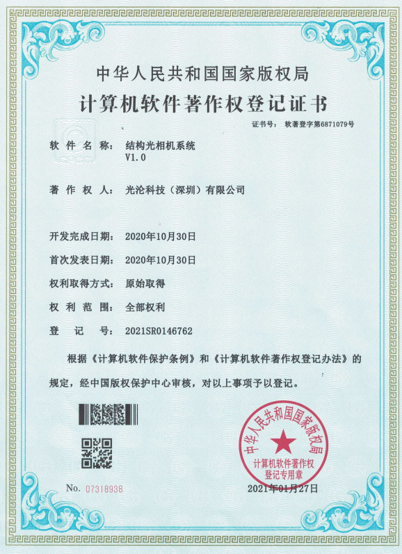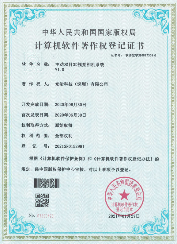 光淪科技工業(yè)機(jī)器人視覺(jué)相機(jī)獲得了多項(xiàng)國(guó)家專(zhuān)利及軟件著作權(quán),公司自成立以來(lái)一直堅(jiān)持自主知識(shí)產(chǎn)權(quán)研發(fā)工業(yè)3D相機(jī)!